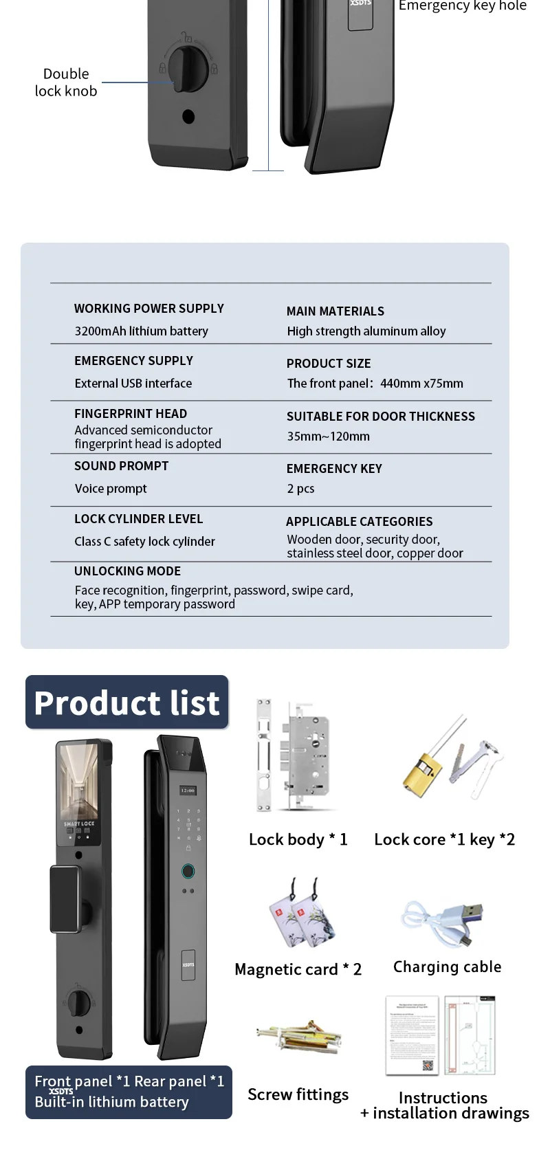Unlock Method: 3D infraed Face,Fingerprint, Password, IC Card, Mechanical Key ,APP