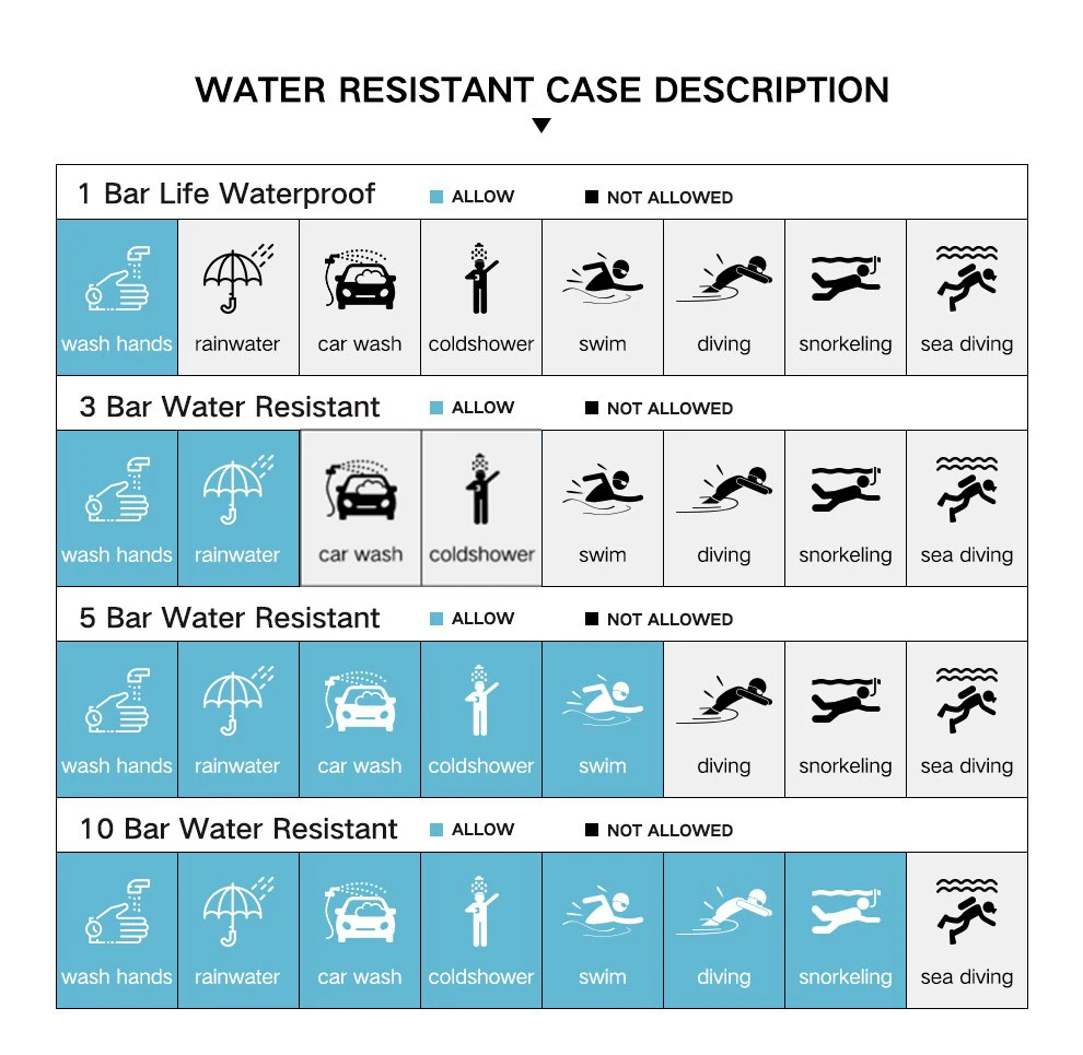 5ATM Resistente à água (lavar as mãos) e à prova de choque