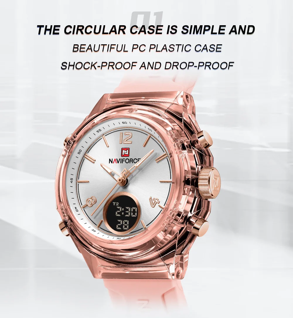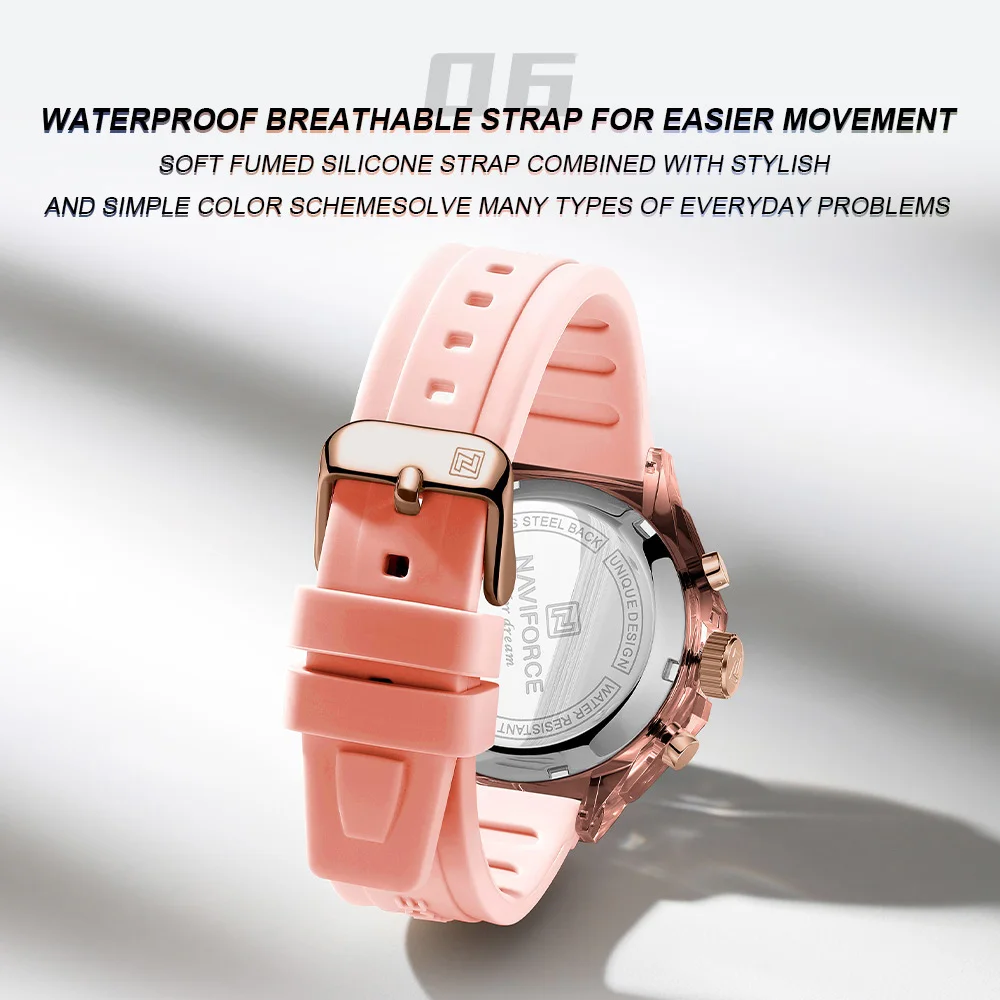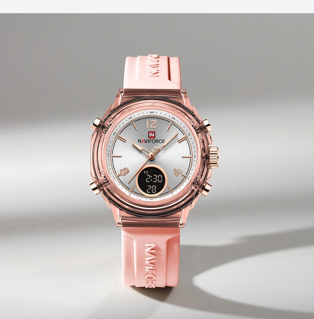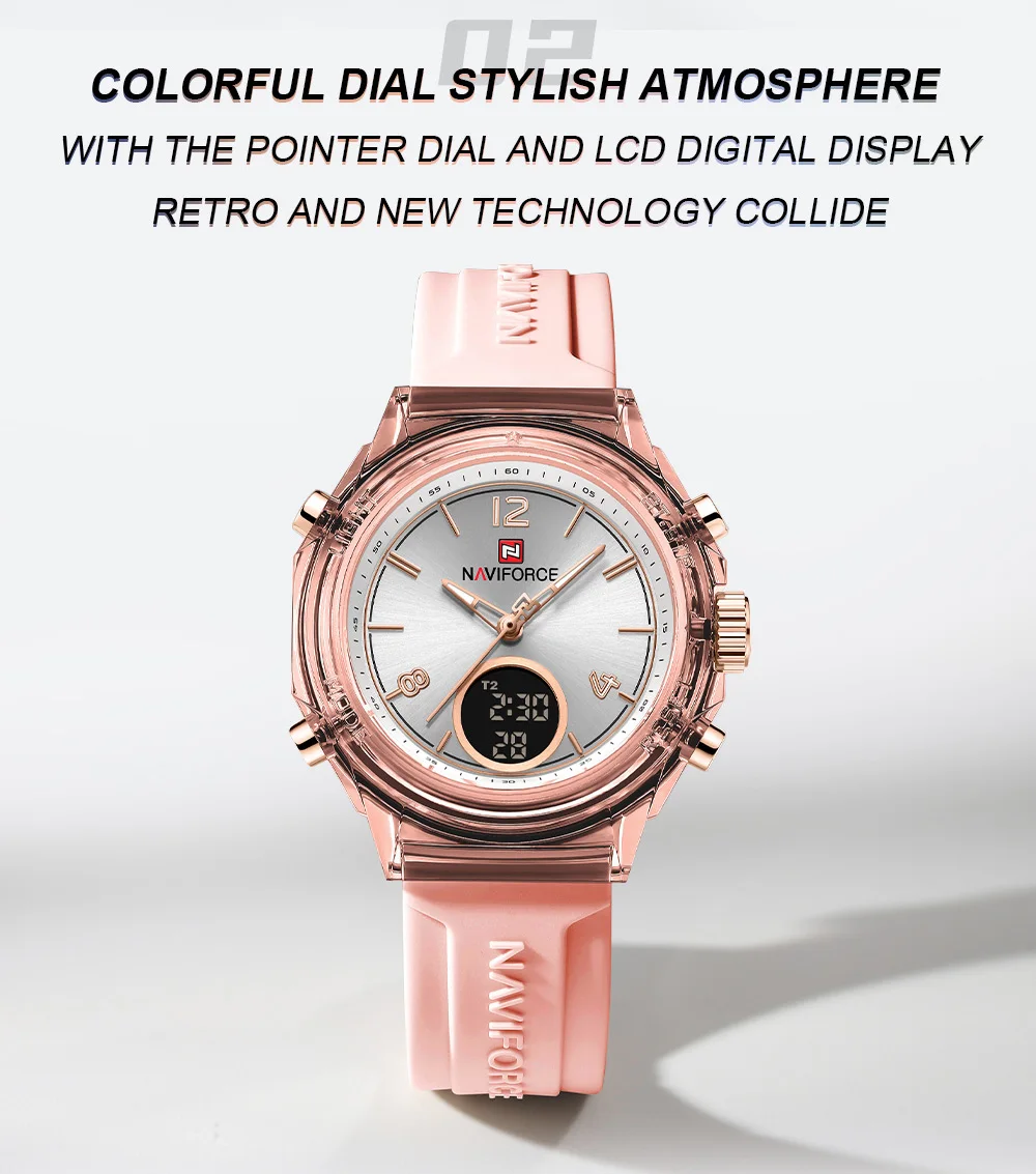 Apresentamos o Naviforce Relógios para Mulher Novo Design Pequeno Mostrador Esporte Senhoras 5 – um acessório pensado para mulheres modernas, elegantes e determinadas. Com diversas opções de cores e modelos (como RGRG-BOX, PW, GYGY, SW, GNGN, LBELBE, entre outras), este relógio é mais do que um simples medidor de tempo: é uma extensão do seu estilo, da sua personalidade e da sua força.
