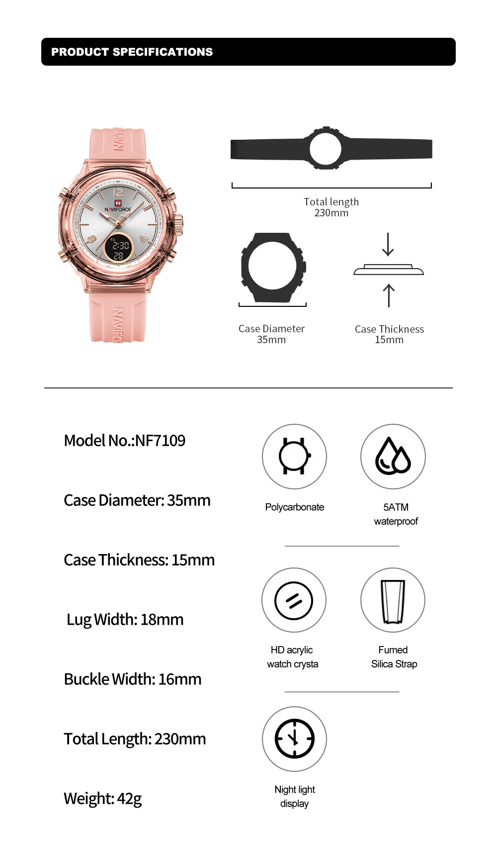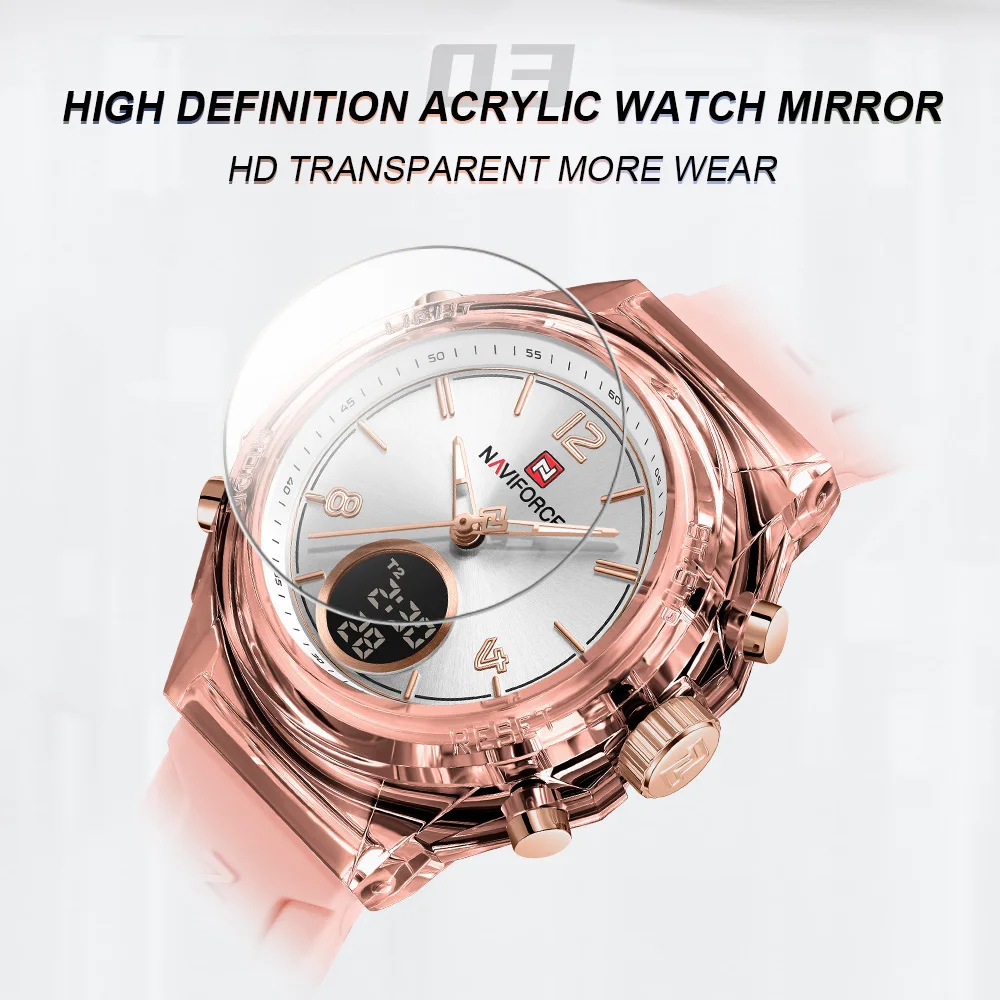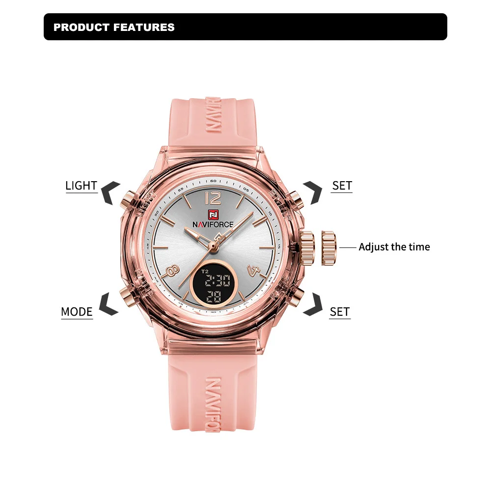 Apresentamos o Naviforce Relógios para Mulher Novo Design Pequeno Mostrador Esporte Senhoras 5 – um acessório pensado para mulheres modernas, elegantes e determinadas. Com diversas opções de cores e modelos (como RGRG-BOX, PW, GYGY, SW, GNGN, LBELBE, entre outras), este relógio é mais do que um simples medidor de tempo: é uma extensão do seu estilo, da sua personalidade e da sua força.