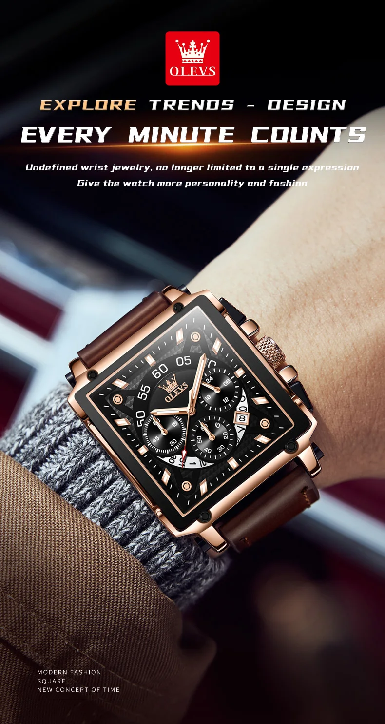 Descubra o Olevs - Relógio de Quartzo Quadrado, a escolha perfeita para homens que valorizam estilo, pontualidade e sofisticação. Um acessório marcante, ideal para todas as ocasiões – do trabalho às celebrações especiais.