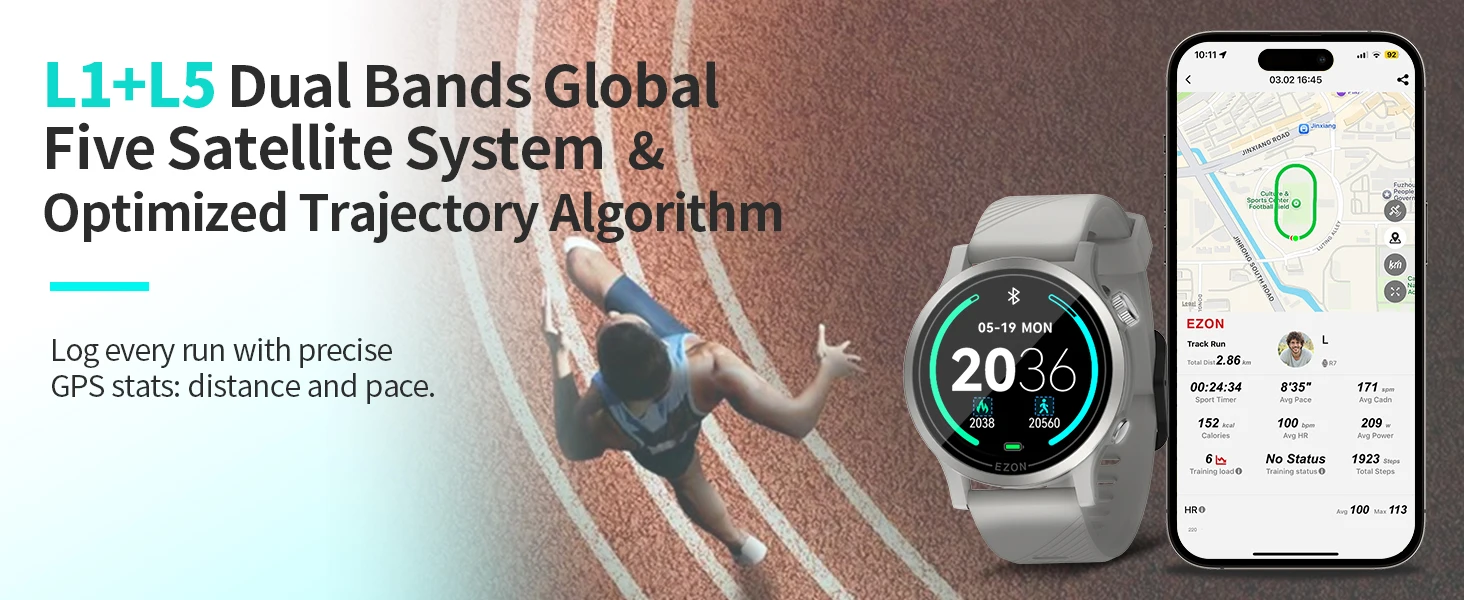 O Ezon R7 conta com sistema GPS de última geração, garantindo rastreamento preciso das suas rotas, distâncias e velocidades em tempo real. Seja correndo, pedalando, caminhando ou explorando trilhas, você sempre saberá onde está e quanto percorreu — sem depender do seu smartphone.