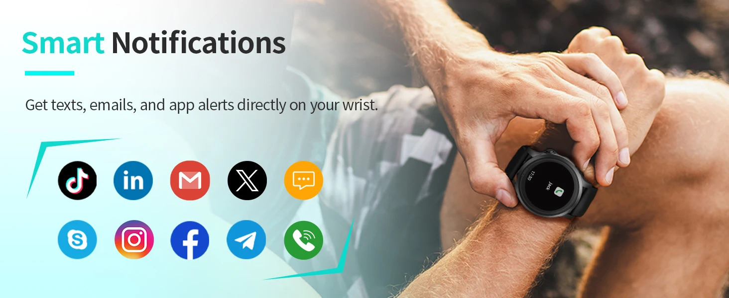 Conecte o Ezon R7 ao seu smartphone e receba notificações de chamadas, mensagens, redes sociais e aplicativos diretamente no pulso. Você fica sempre conectado, sem precisar tirar o celular do bolso.