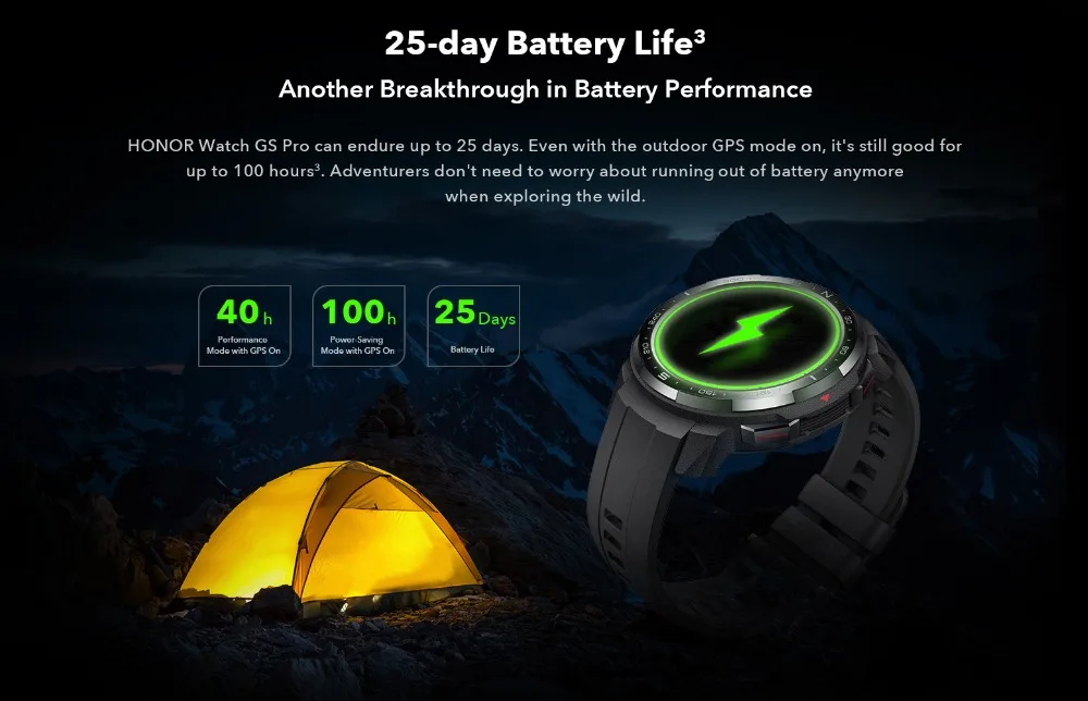 Com uma bateria potente e sistema de baixo consumo de energia, o Honra-Pro Smartwatch GS garante até 7 dias de uso contínuo e 15 dias em modo standby com apenas uma carga completa. Além disso, ele é resistente à água e poeira (IP67), ideal para uso diário, mesmo em dias chuvosos ou durante o treino.