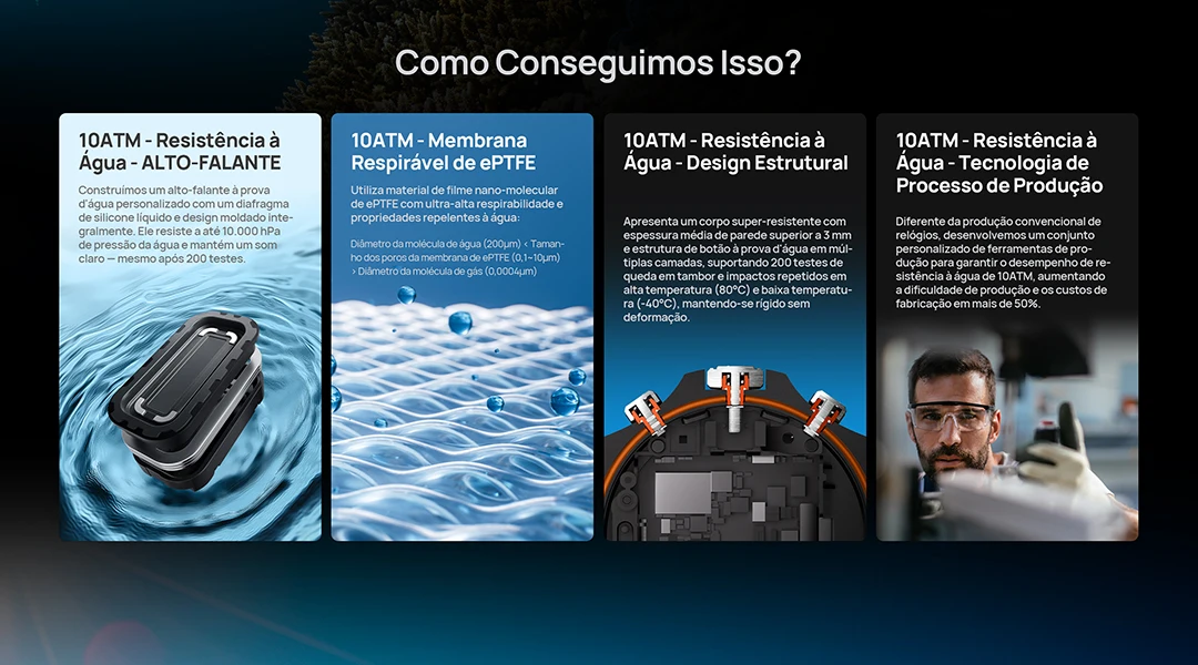 E com a resistência à água IP68, você pode usar o relógio sem preocupações até mesmo em dias chuvosos ou durante treinos intensos.
