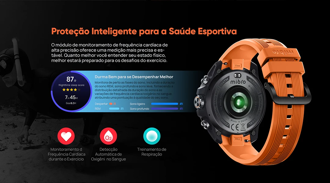 ✔️ Monitora saúde e desempenho físico com precisão